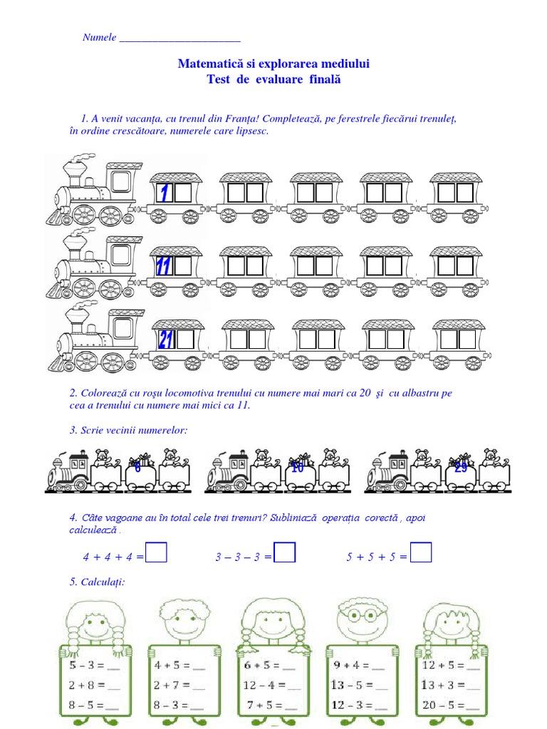 Foloseşte drag and drop pentru a răspunde. Partea i descriptori de performanţă itemul foarte bine încercuieşte corect 4. 15) am elior ar e/ d e zv oltar e. Start la teste matematica online cu exercitii si probleme. Exerciţii distractive, educative și bine organizate.